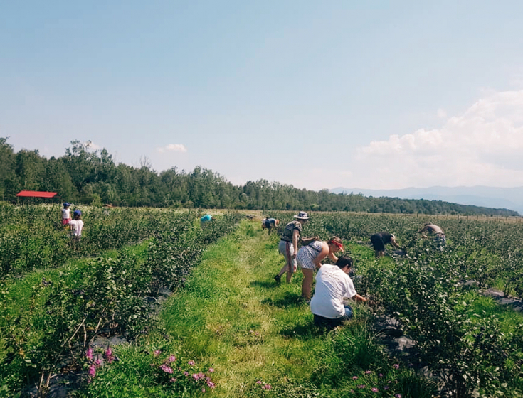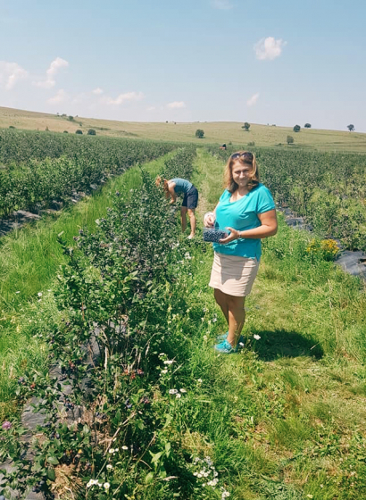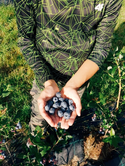 Culege singur afinele direct din plantație